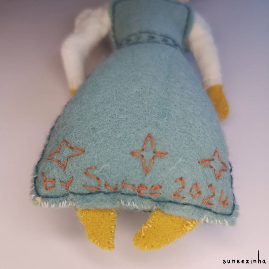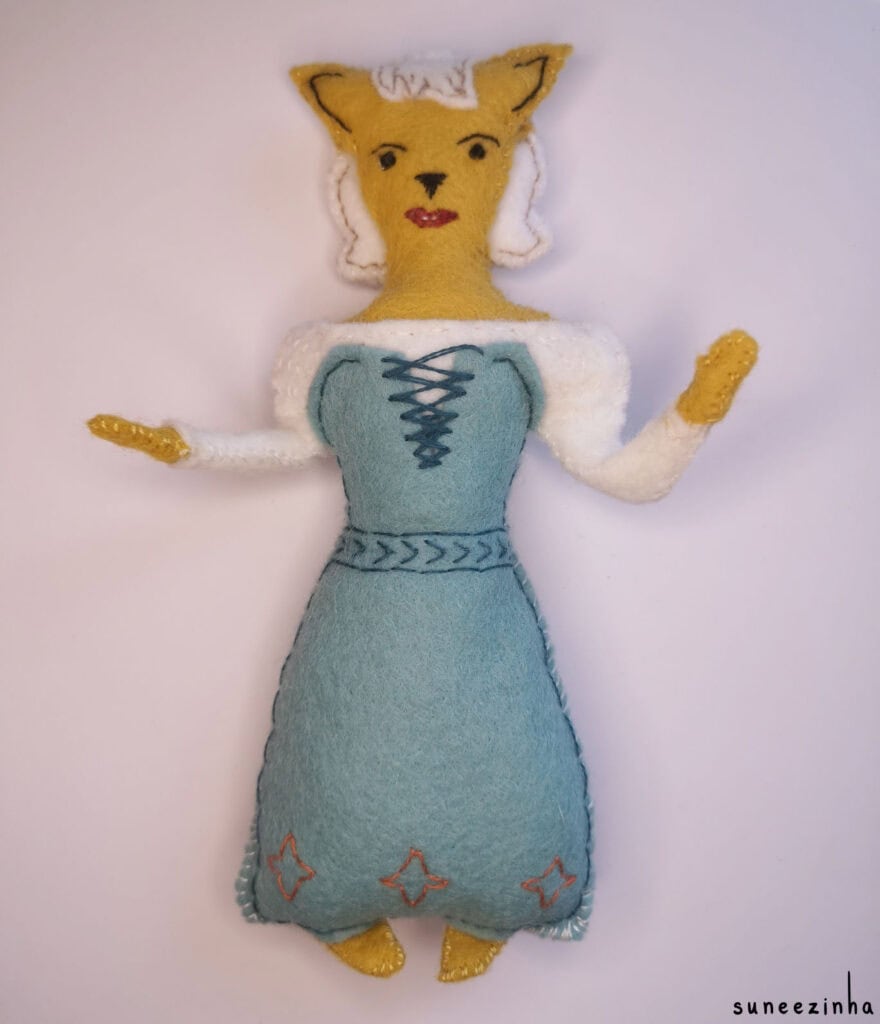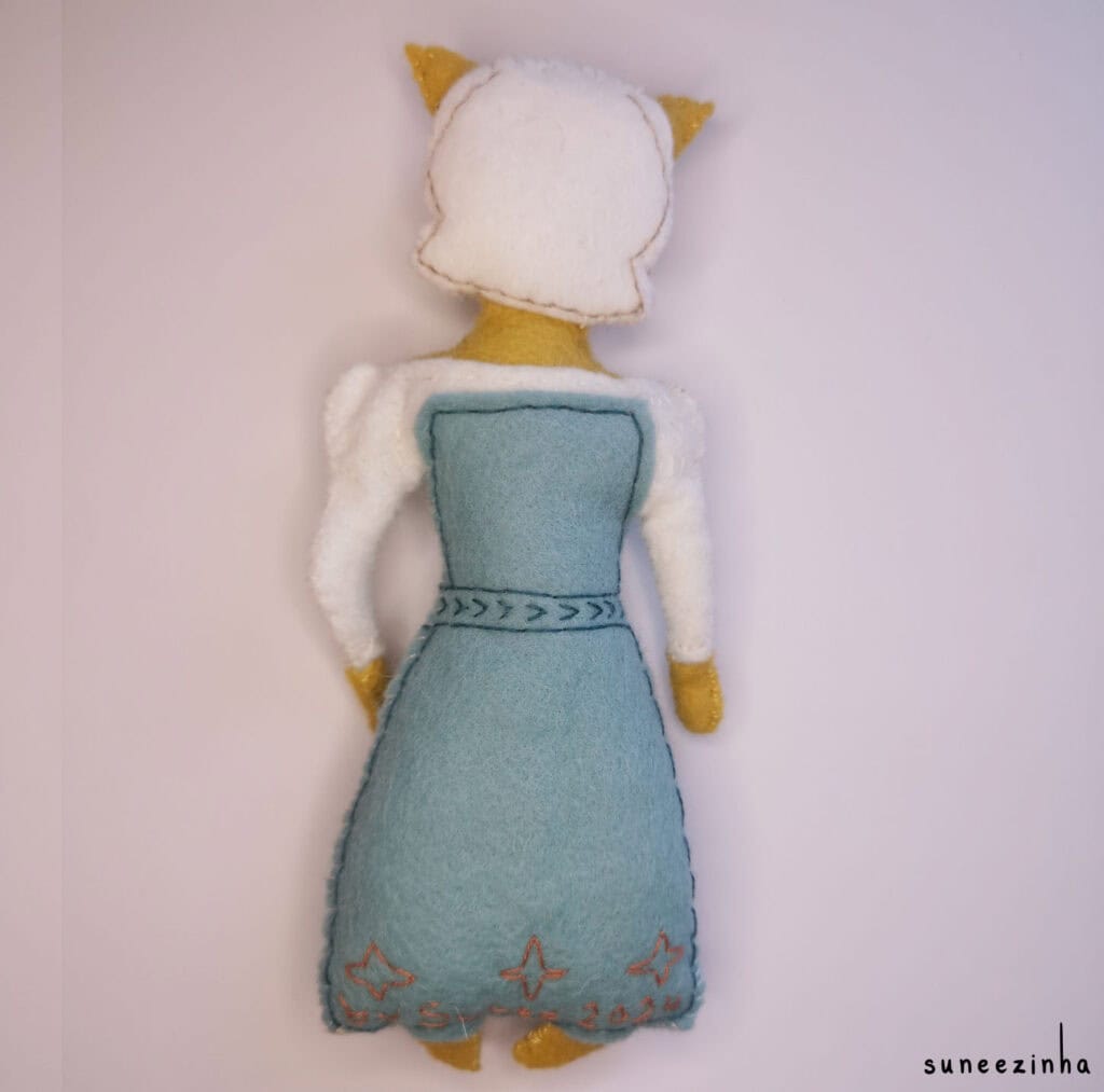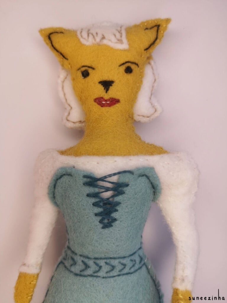 Jeanette was made out of scrap felt. This sassy cat barmaid has posable arms!